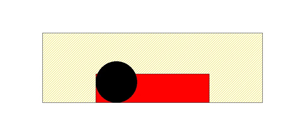 If you look at the first picture, imagine that our workpiece is below the red section we want pocketed, and the yellow striped area is waste material. We have two issues: one, our bit won't fit in that area, and even if it did, we'd still run into two, it's not going to successfully reach the corners.