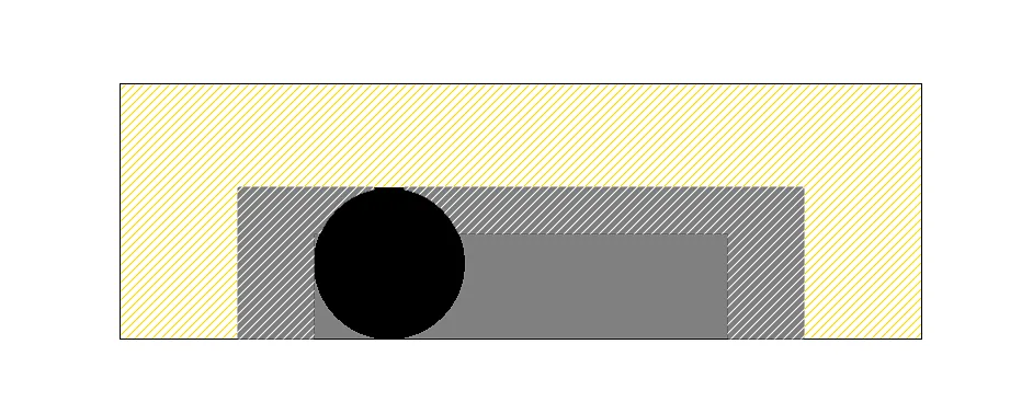 What we need to do is expand our pocket into the waste area so that 100% of the area we want pocketed will be covered. If you look at the second picture, you can see that by expanding our pocket to the striped grey area, we can ensure that all of the solid grey area will be pocketed by the endmill.