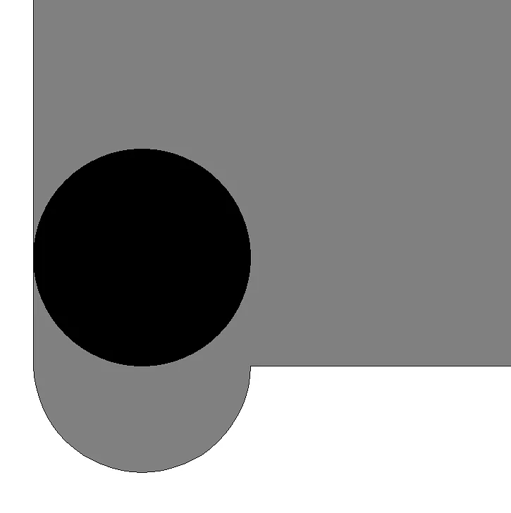 Let's look at the most common issue you're going to run into: square corner, round bit (see first picture). What's going to happen here is the bit (black) is going to follow the edges of pattern and successfully mill out the grey area, but will be unable to reach the red portion in the corner, since that would require the bit to mill outside of the area you specified.