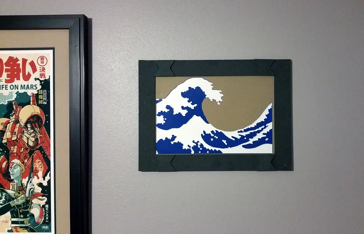 All that's left to do is mount your artwork, and hang it on a wall! For this frame I added a small circular pocket to the center of the top section of the frame, so I just placed it on a hook on my wall and it instantly leveled itself out.
