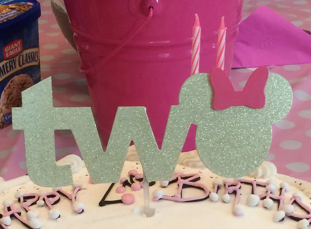 Glue the bow to the letters with super glue. I had a separate cake topper stick that was then glued to the back of the letters.