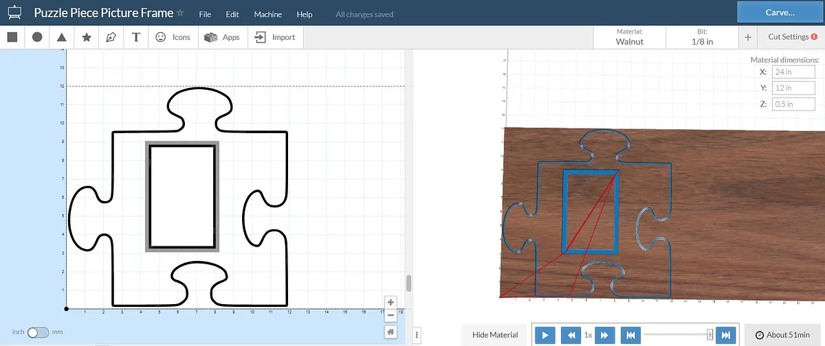 Just put it on your cnc router and cut it out. It cuts out the back side so that there is a recessed section so that the glass and picture can be retained. If you would like to engrave anything on the front then you will need to flip it over after it is cut out.
