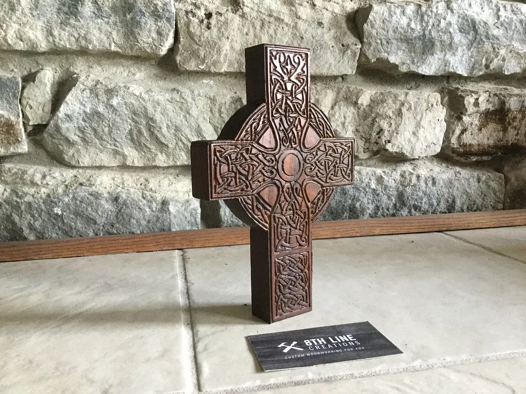 The original idea was to use it as a book cover. But we cut ours in the shape of the cross with a band saw.