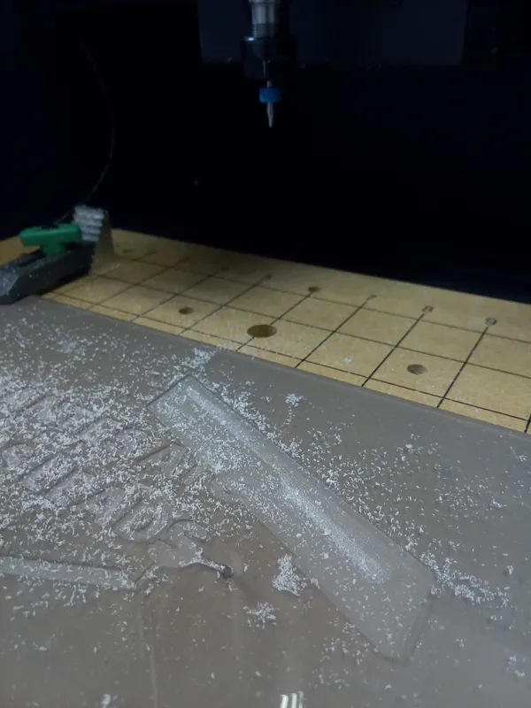 Well, two 1/16 bits broke while milling the signage. Looks like there's an error in the gcode, the tool doesnt lift up enough and moves laterally into uncut material.