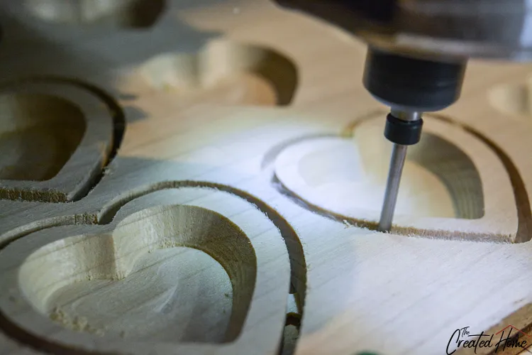 The nice thing about this carve is that you can buff these with a hand sander and pretty well be done with the project straight off of the X-Carve. Alternately, you can finish these with dye, stain, or paint. For more information on how we finished these, as well as how we used them, check out https://thecreatedhome.com/valentines-heart…s-on-the-x-carve/