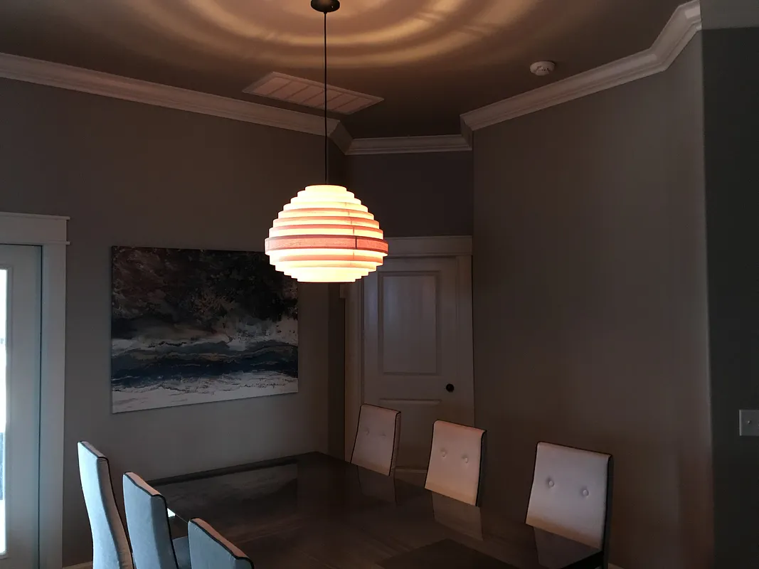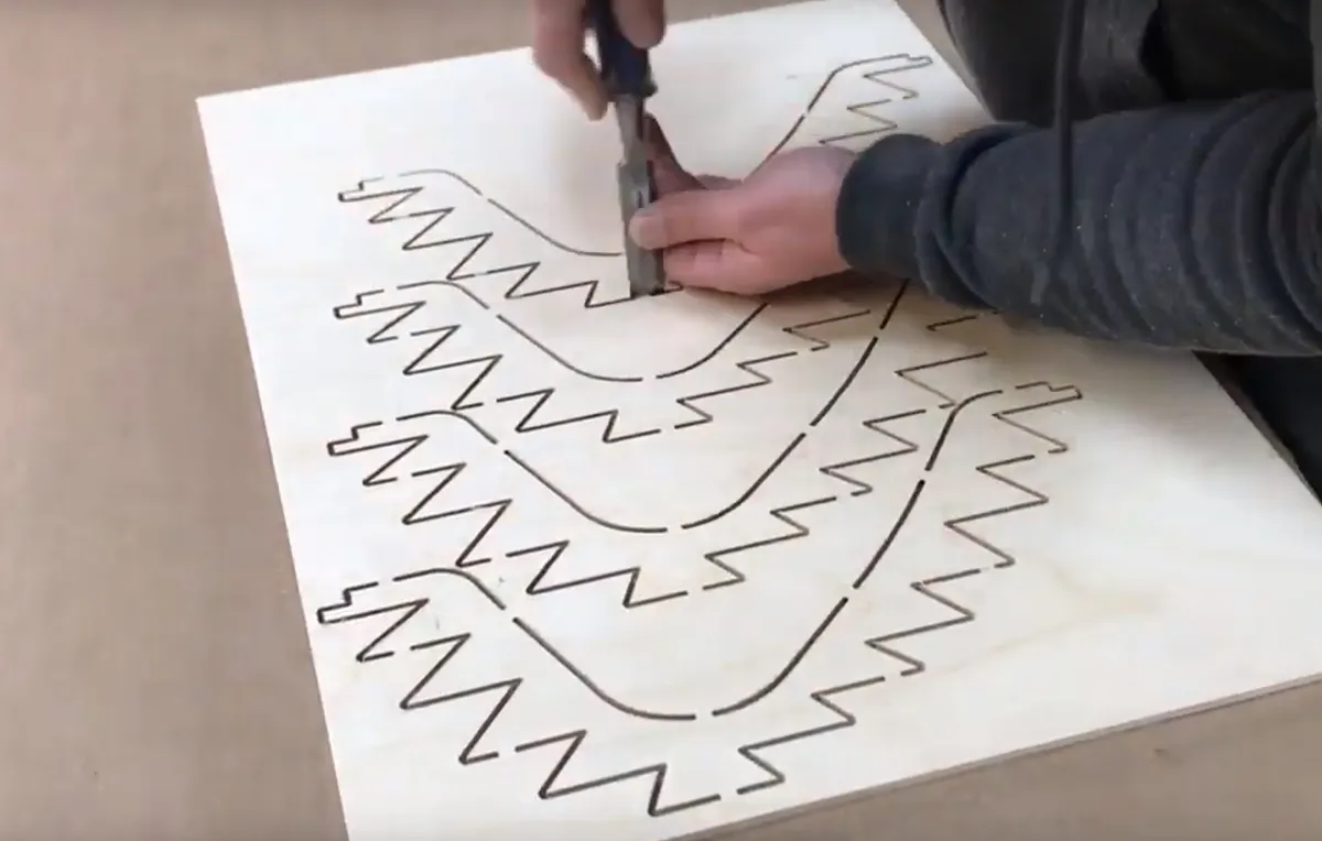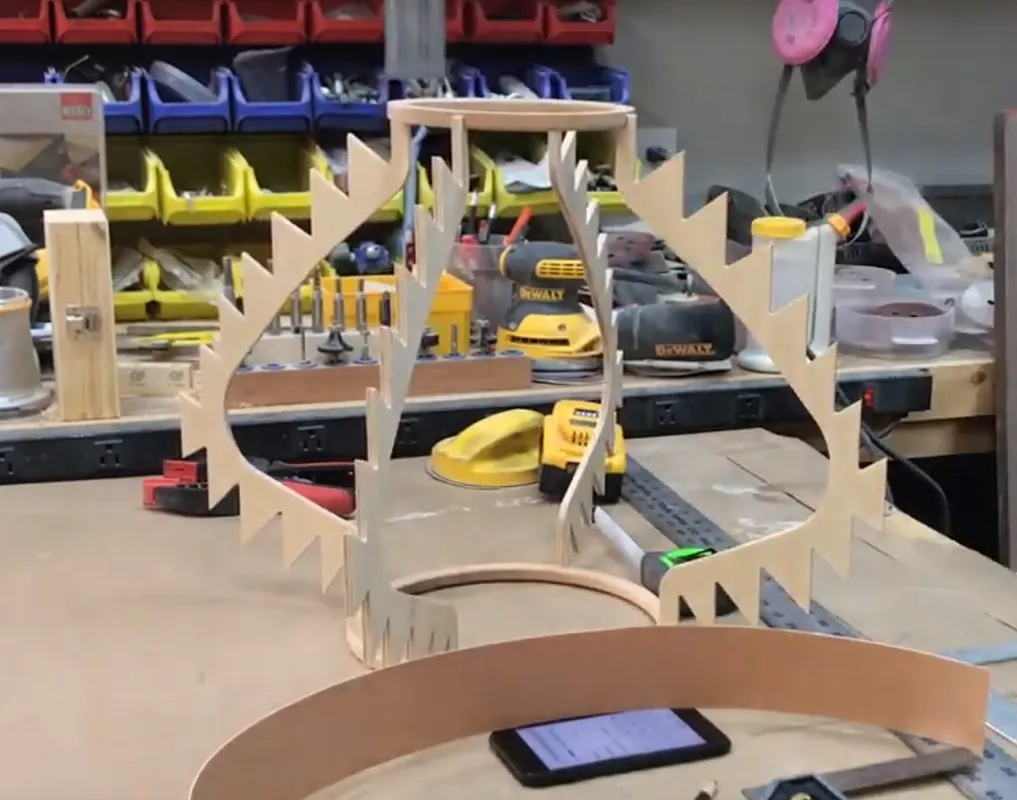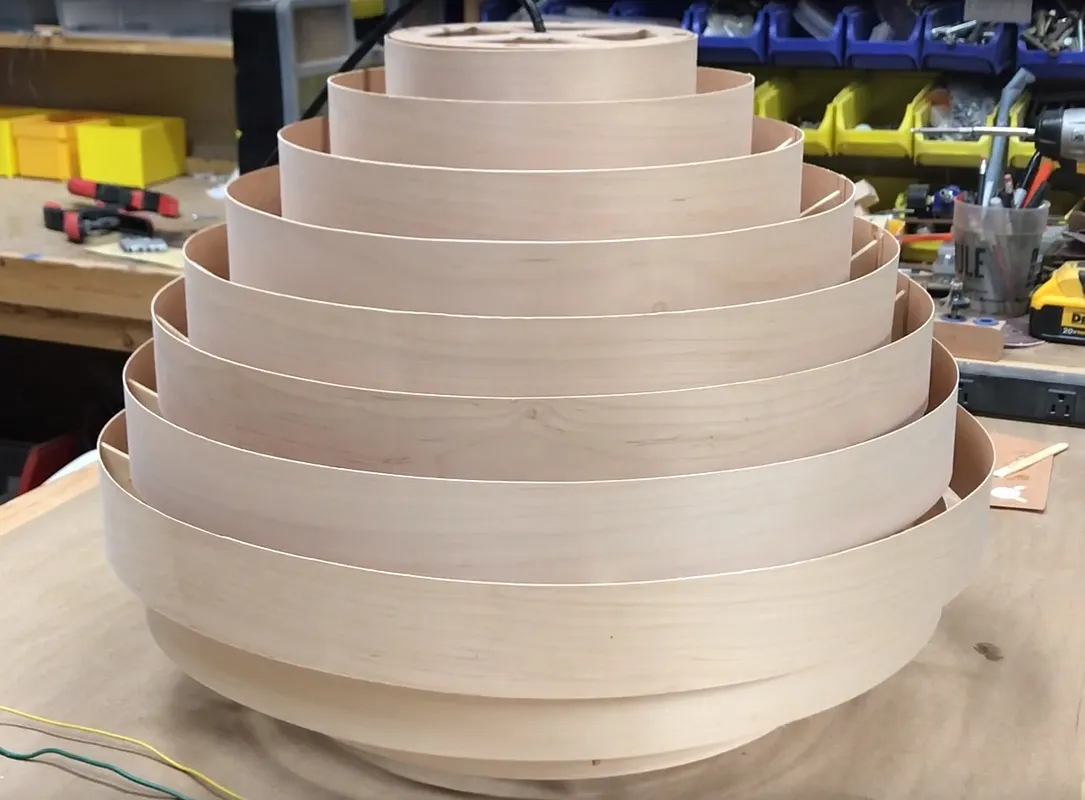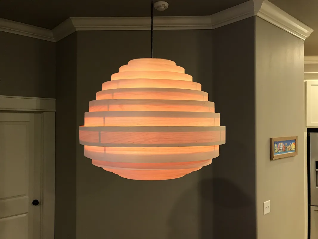 This hanging lamp is made almost entirely with the X-Carve. The ribs are made with 6mm Baltic Birch plywood and the top and bottom rings are made with Cherry though the rings could also be carved from the plywood.