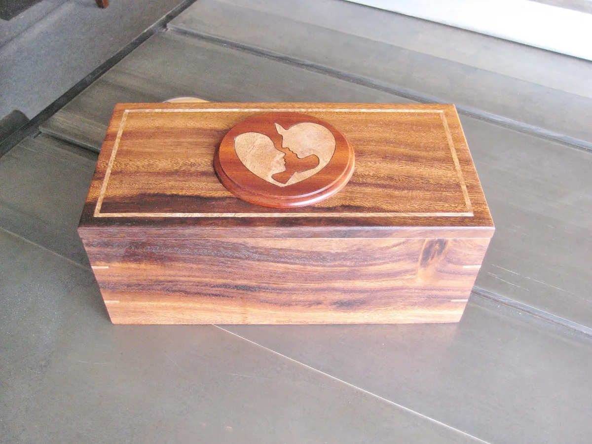This inlay was cut with a .005 tolerance for a tight fit, but for a different look, this jewelry box inlay below was cut at .015 to produce a thin black outline. Experiment with different settings to get the look your want.