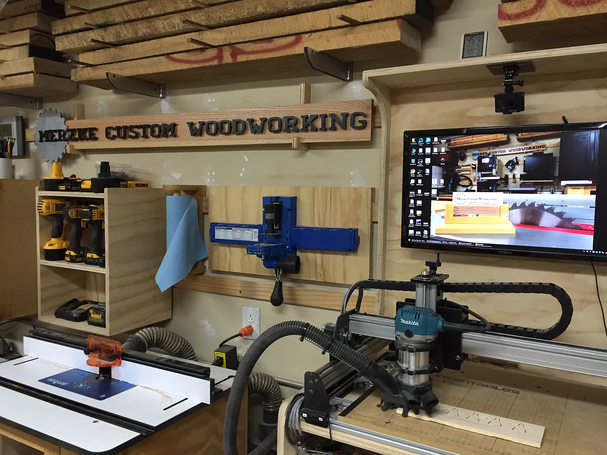 Once the glue was set I sprayed a couple coats of satin lacquer over the entire sign. To hang the sign on the wall of my shop I made some small brackets that could attach to the french cleats on my shop wall. This weekend project produced a custom shop sign that not only displayed my business logo but also showed just a small taste of what can be produced from a combination of traditional woodworking tools and the X-Carve.