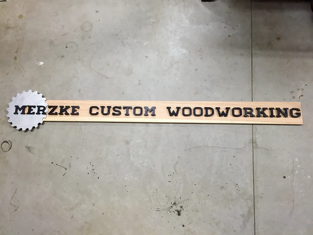 Just in every other project, the first step is your initial idea or in some cases a problem that needs to be solved. For me it was that my shop needed a sign. I first took my logo and figured out a design where I could use both my traditional (POWER) woodworking tools and my CNC (Shapeoko 2/X-Carve). Since the sign was going to be larger than my CNC could handle I chose to cut out the saw blade and letters with my CNC and then glue them to a 5"x62" Red Oak Board.