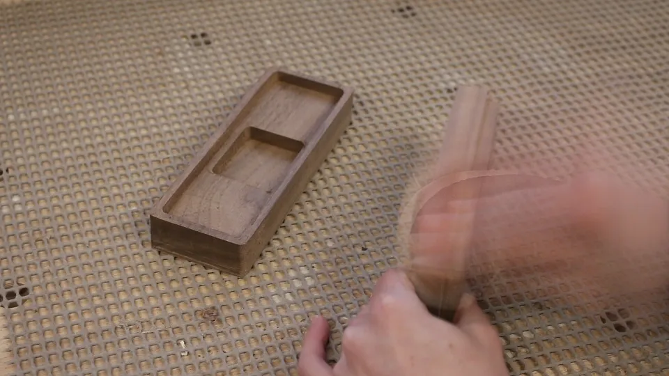Once the X-Carve had done its thing I just needed to do some sanding to get the piece ready for finish. The fit of the lid to the base a bit tight but I made some changes to the easel project and it is much better now. It only took a little hand sanding to get the fit just right though. I sanded the box all over using 350 grit sandpaper.