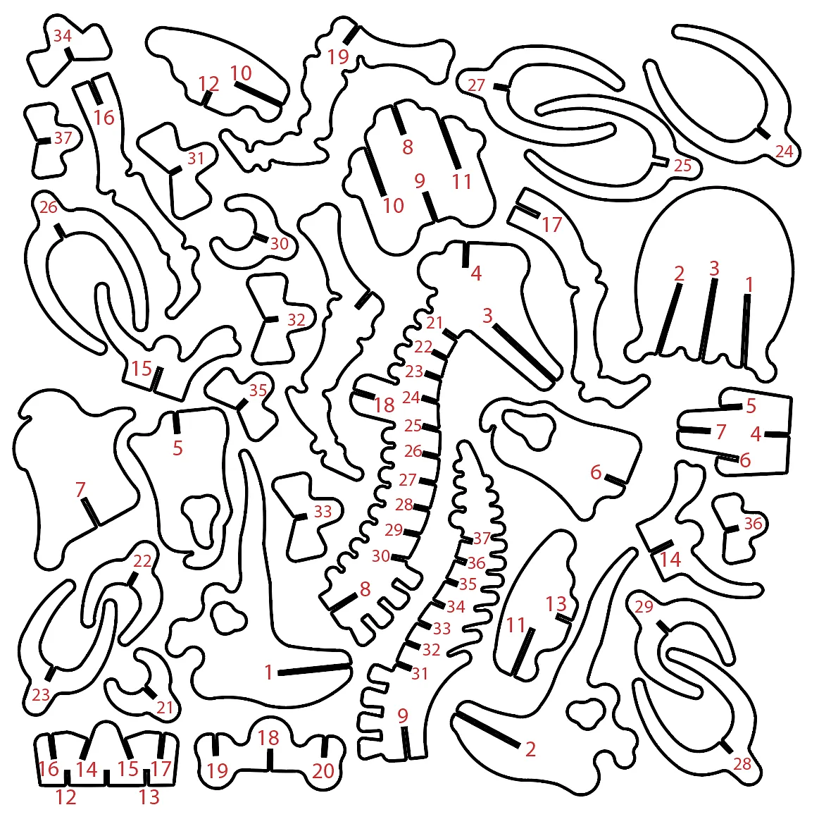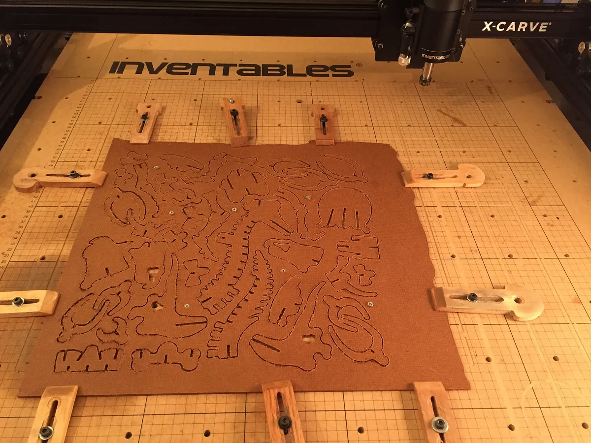 Now that the bones have been carved, you may want to sand and finish your material, being sure that the slots are all clear of tear-out and any left over pieces.