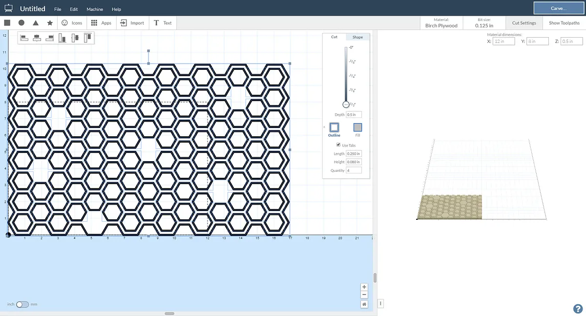Also if you are milling the hexagons to the total depth, remove the "tabs" option.