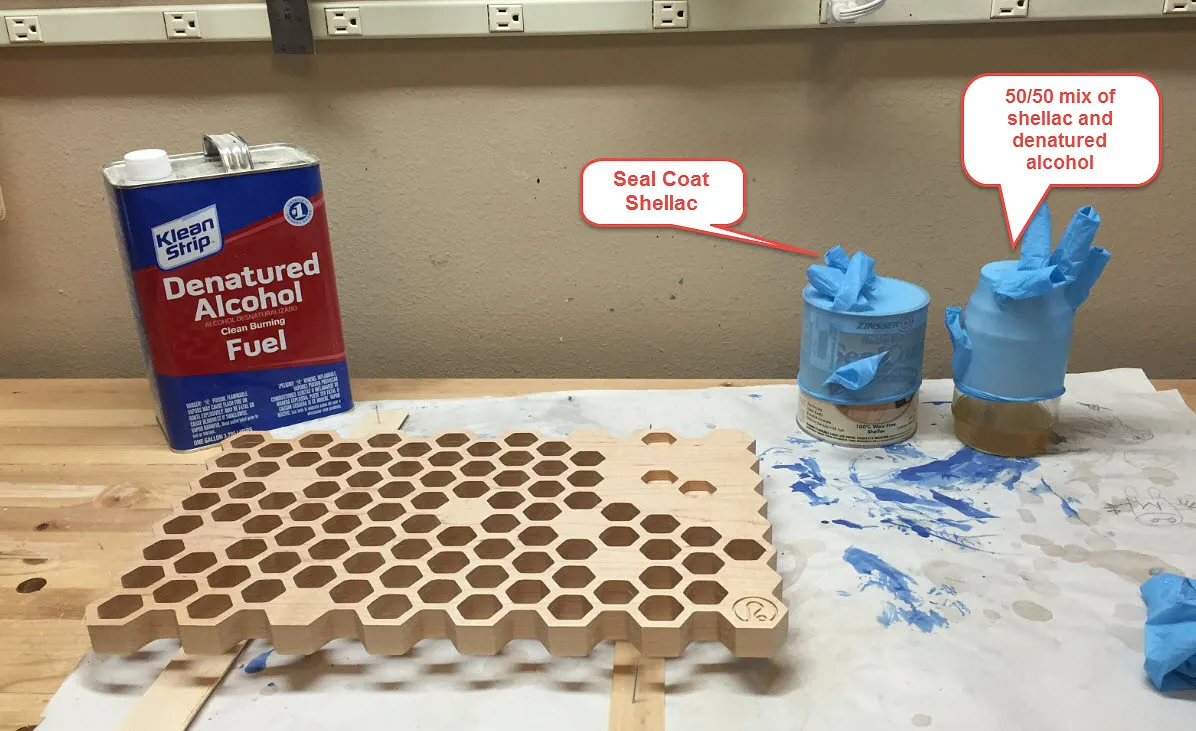 Seal the wood with a 50/50 mixture of shellac and denatured alcohol.