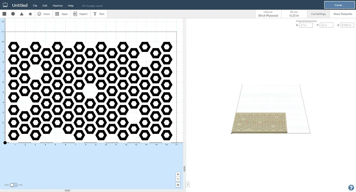 select all the hexagons and change the depth of cut to zero.