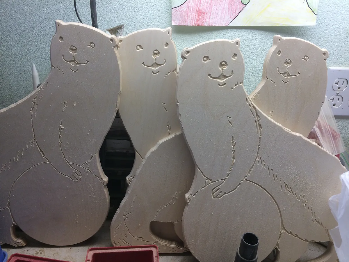 Put a new piece of wood on the X-Carve and cut the right side texture and outline like you did for the left side in steps one and two. Now you'll have both sides prepared, or if you made a mistake like I did and accidentally cut two of the left side, you'll have two of each side so you can build two stools.