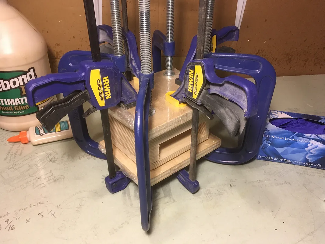 I quite like the idea. But 2 questions: - why not put in small holes for dowels to help with alignment - why not just glue round feet onto it rather than removing all that material (and risking a funny look due to the layered ply)