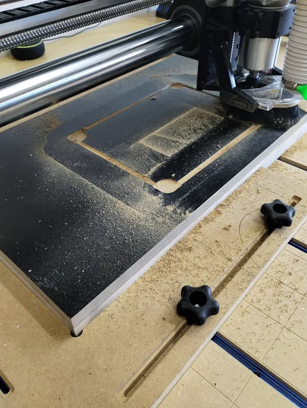 Carved with a 1/4 inch downcut bit