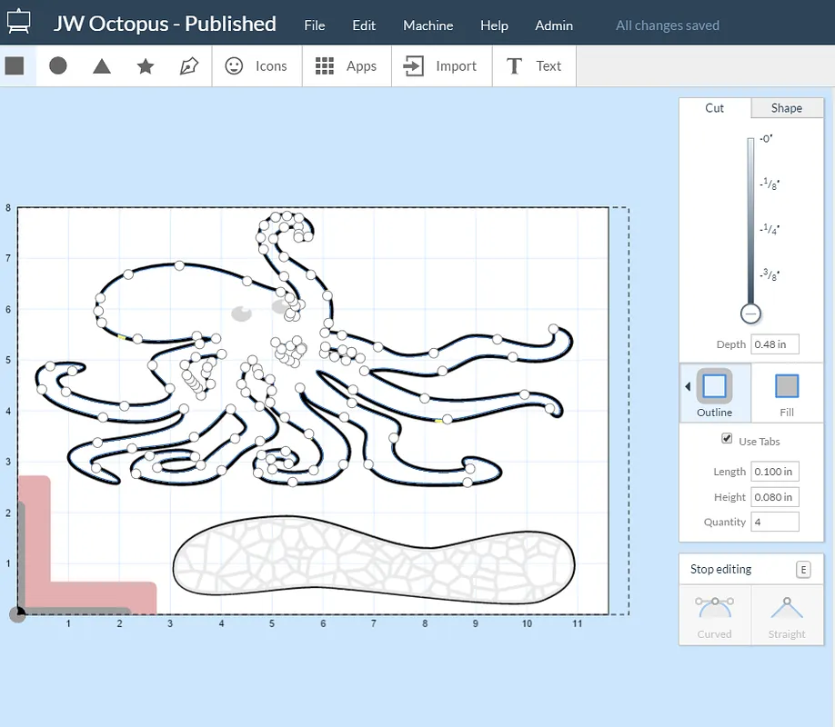 Hi Michael, I used a 1/16" fishtail bit, however it required a little hacking to get all the way through the 1/2" material due to the length of the bit. You could use a 1/8" fishtail or straight flute bit to get all the way through no problem, but you might lose a little detail in the outline.