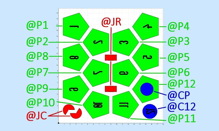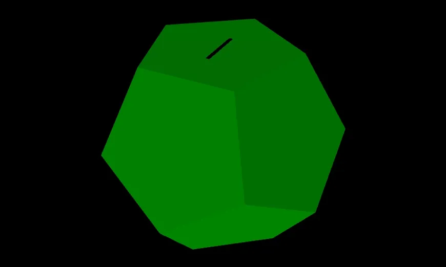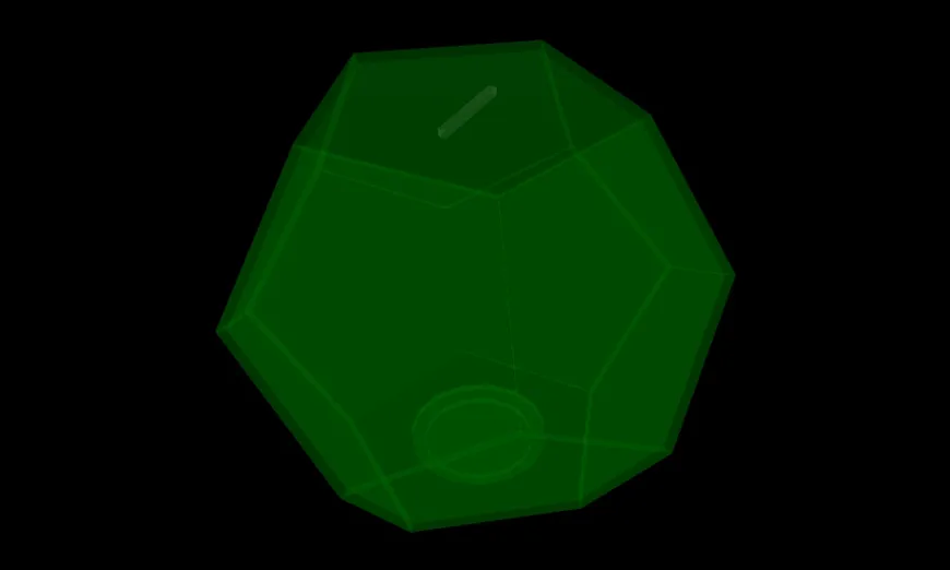Notes: * CC licenses are a poor choice for design plans (Architectural precedent say the Copyright also applies to the products of plans) ** My Clarity Waiver: You may omit all license notices on Products of these plans. * "Front" (of the Acrylic) = "Bottom" (as placed on the CNC) = "Outside" (of the finished project) ** "Back" = "Top" = "Inside" * Unimportant (to this project) trivia, so that you don't have to look it up for related projects ** Diameter of Circulating Coins: < 38.2mm ** Thickness of Circulating Coins: < 3.4mm ** D12 height = Pentagon Radius * 2.61803~ ** Pentagon edge cut and join angles angles as pictured below