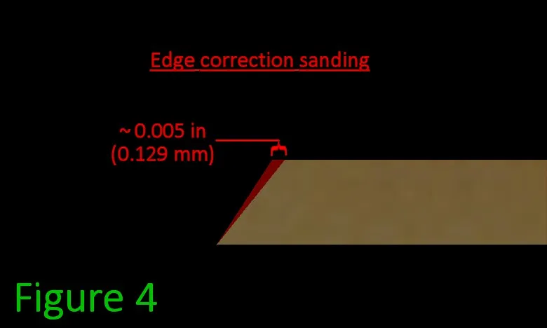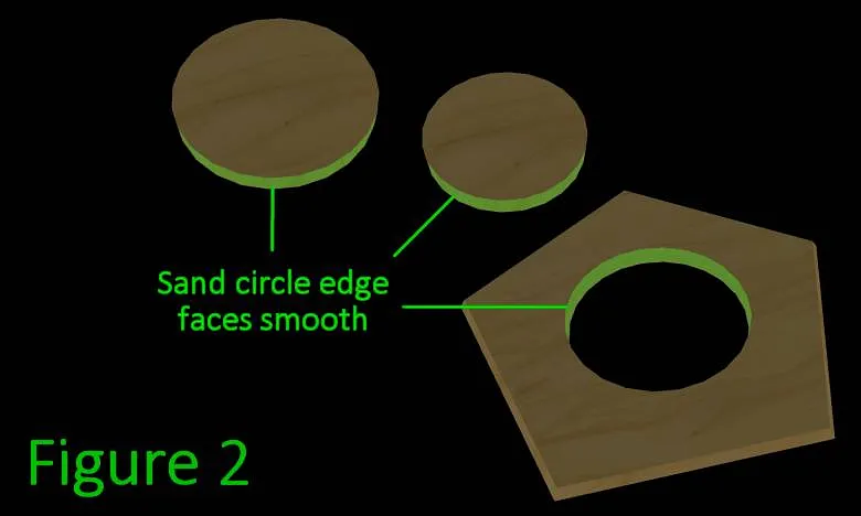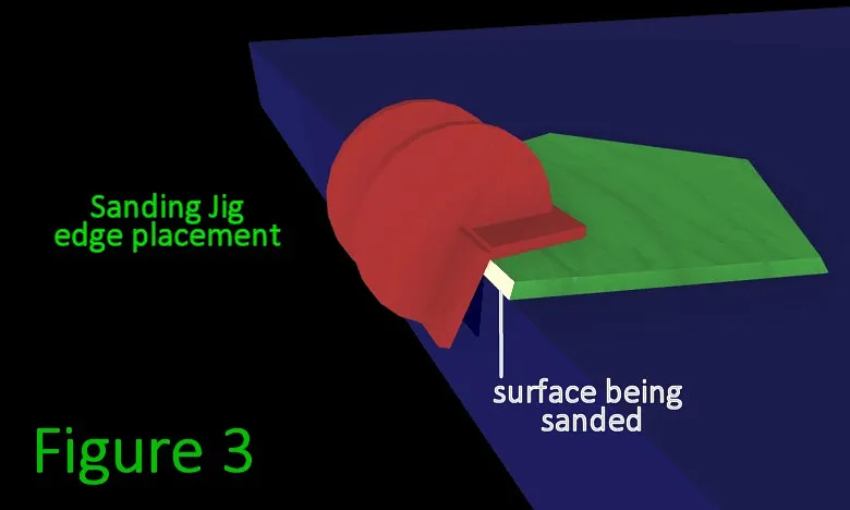 fn3.Note: You may be wondering, "why didn't we just cut the exact angle to begin with?". If we try to cut it as a contour shape we won't get as clean of an edge (bad for gluing), and that method takes more time than the sanding does. It's possible to use adjustable v-bits but they are bulky and not quite precise enough, and are very expensive (as are custom v-bits). It may seem like a small amount, but it really makes a difference in glue bond clarity and strength. For thicker pieces the difference results in larger visible gaps on the outside edges if not corrected.