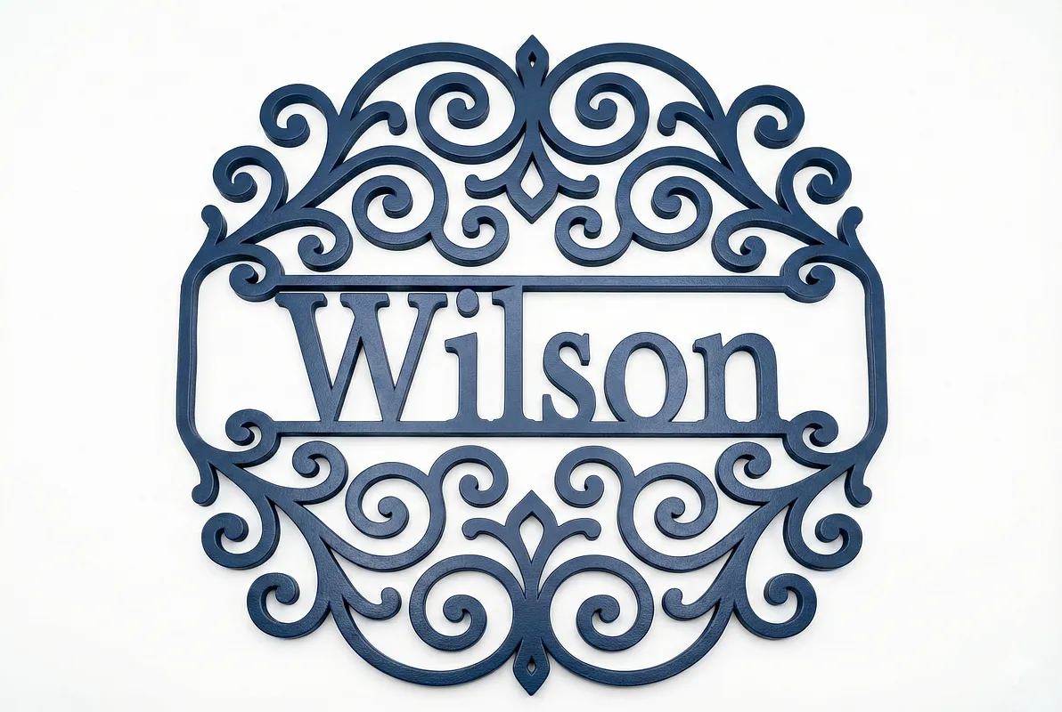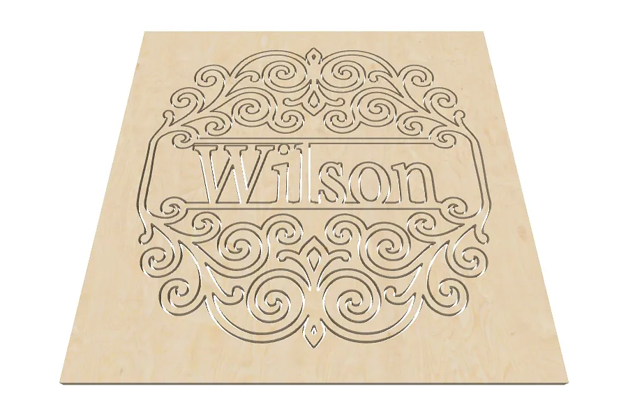 A cut out monogram of the last name Wilson using the Royal Style and Baskerville font.