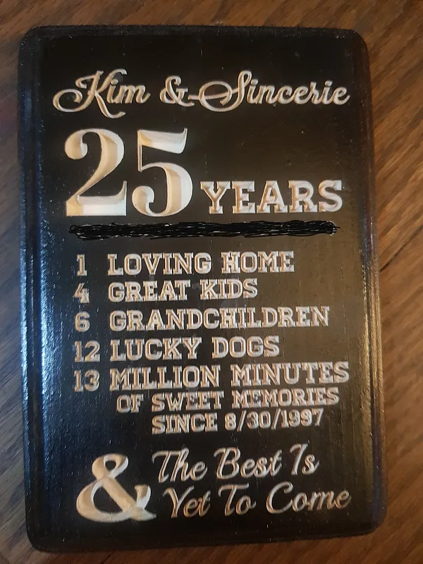Kim & Sincerie's 25th Anniversary Plaque