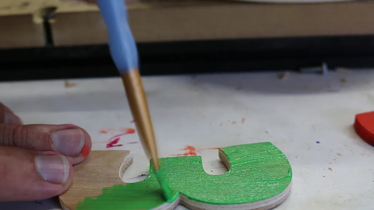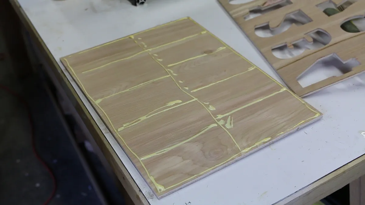 Glue the piece with the letters cut out to the second pieces of plywood. Make sure you don't get any glue where the numbers go. Us claps to hold the two pieces together while the glue drys.