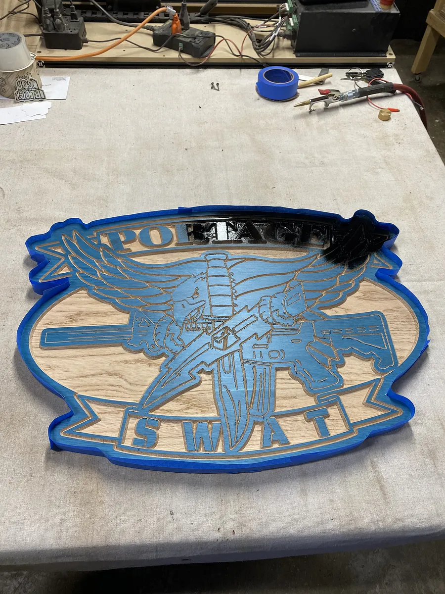 Cut out using: 1/8" End Mill Feed Rate: 46.8 in/min Plunge Rate: 9 in/min Depth Per Pass: 0.0625 in