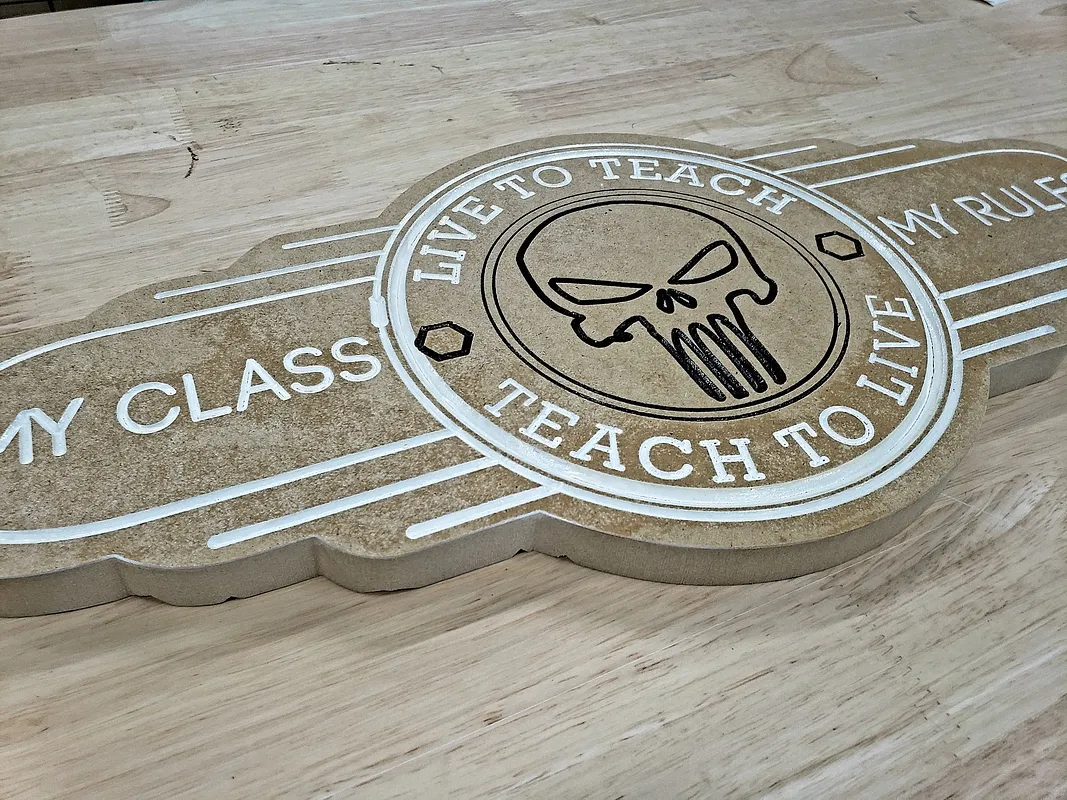 Another iteration of the same design. This time I tried V-Carving. It came out pretty well once post-processing was completed. For post-processing, I used acrylic paint, orbital sander and a coat of oil finish.