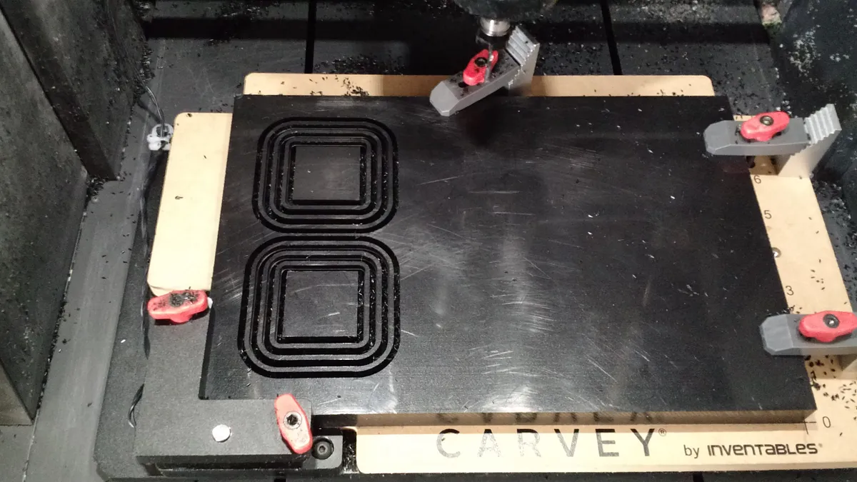 Use a 1/8" square or fishtail endmill to mill the walls for the box set. A 3/4" or taller material will be best for making a functional box. Use double sided tape to keep the nesting sections from shifting