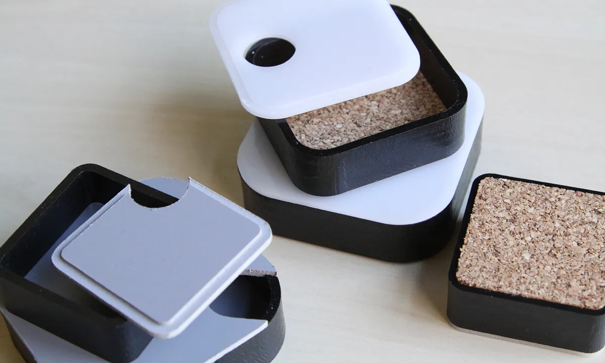 Choose a 1/8" material to use as your lid. Expanded PVC cuts quickly and comes in good colors. A translucent acrylic also works really well.