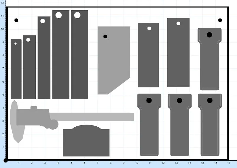 So the first step is do decide on your tool layout. If you are lazy like me and have the same tools that came with the x-carve then you can just skip this step and use my tool rack files. Once you have decided on what tools to use and the layout then you can go on to designing them on any CAD program that can save as an SVG to be imported into easel or simply just create the shapes in easel with a bit of improvisation!