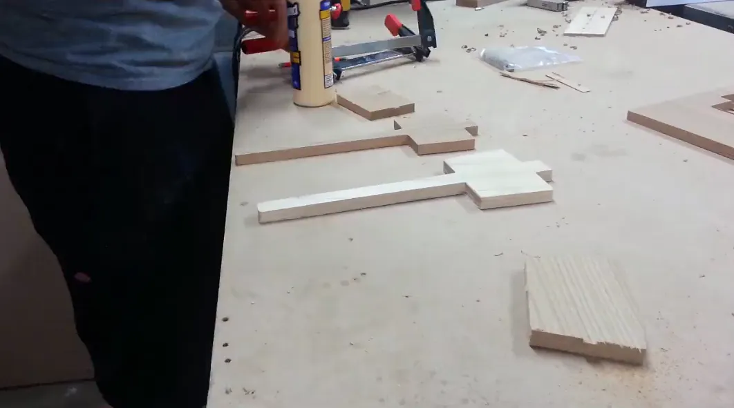 Layout your pieces, clamps and get your glue ready. It helps to have a silicone glue brush for spreading the glue around the pieces evenly but this can be achieved using your finger or a paint brush.