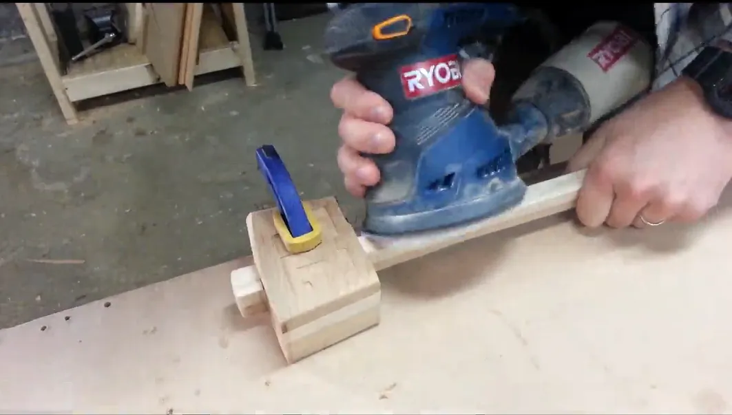 Shaping the handle, smoothing edges and faces as well as adding a customized feel can all be accomplished using a random orbit sander a clamp and a low grit sanding paper.