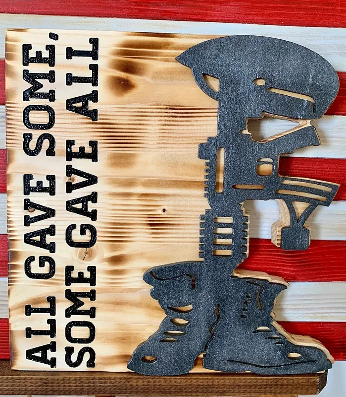 The design was in the project I downloaded. Just cut it on a thinner piece of wood. I think birch sub-floor Plywood.cut profile that is in project - then painted the silhouette and then glued to backer board. Great project for a beginner too.