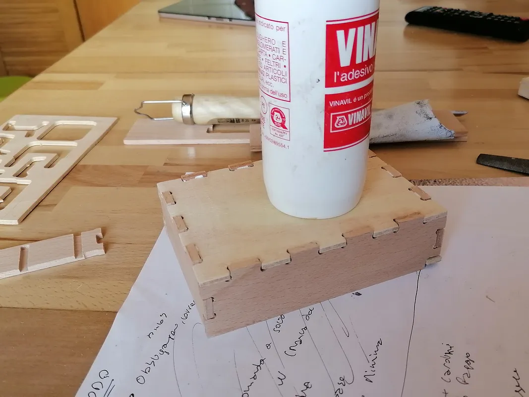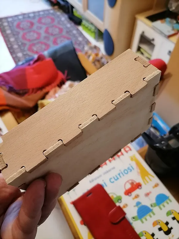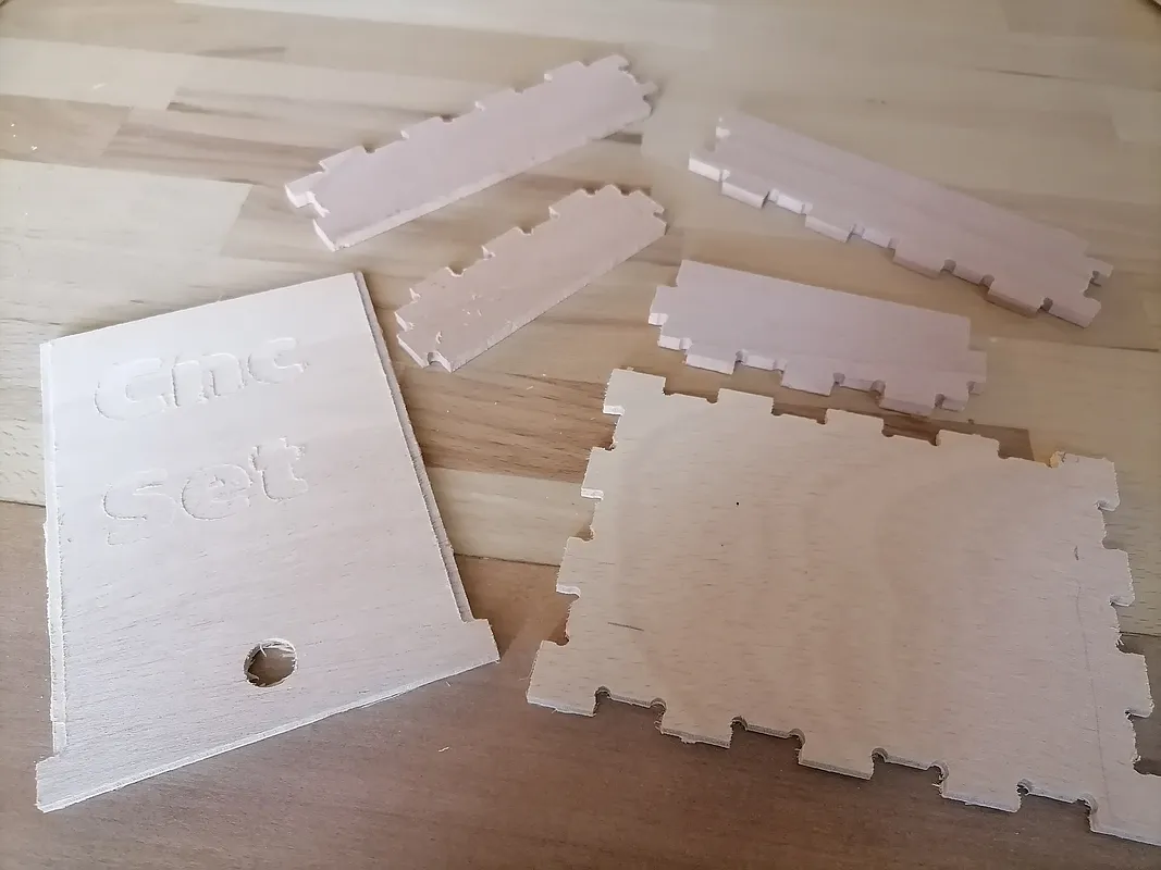 a small box for Cnc accessories, top and bottom in plywood, sides in hard wood (beech)
