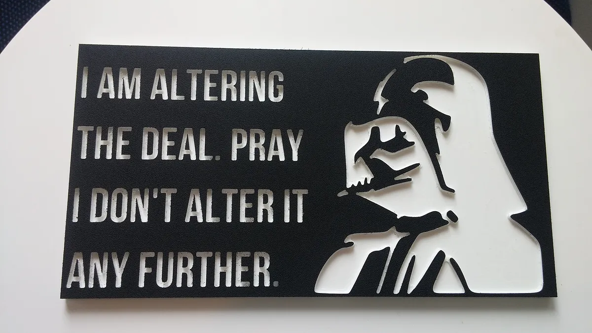 A little sign of Mr. Vader himself, accompanied by the quote that ultimately destroyed the Death Star (Lando was the one who blew up the center of the death star, he wouldn't have been fight the Empire if Vader didn't antagonize him).