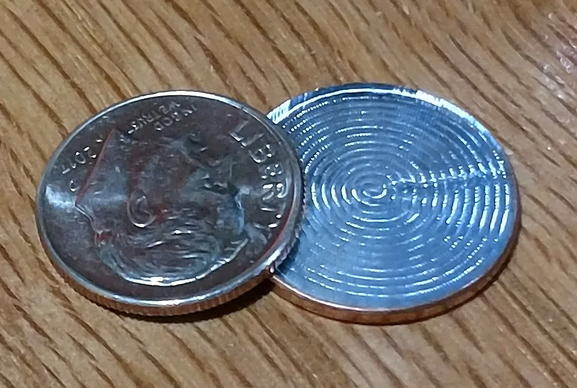 The shell coin is quickly slid over the dime to make it appear to be gone. A thin metal disc can also be glued inside to make the penny magnetic.