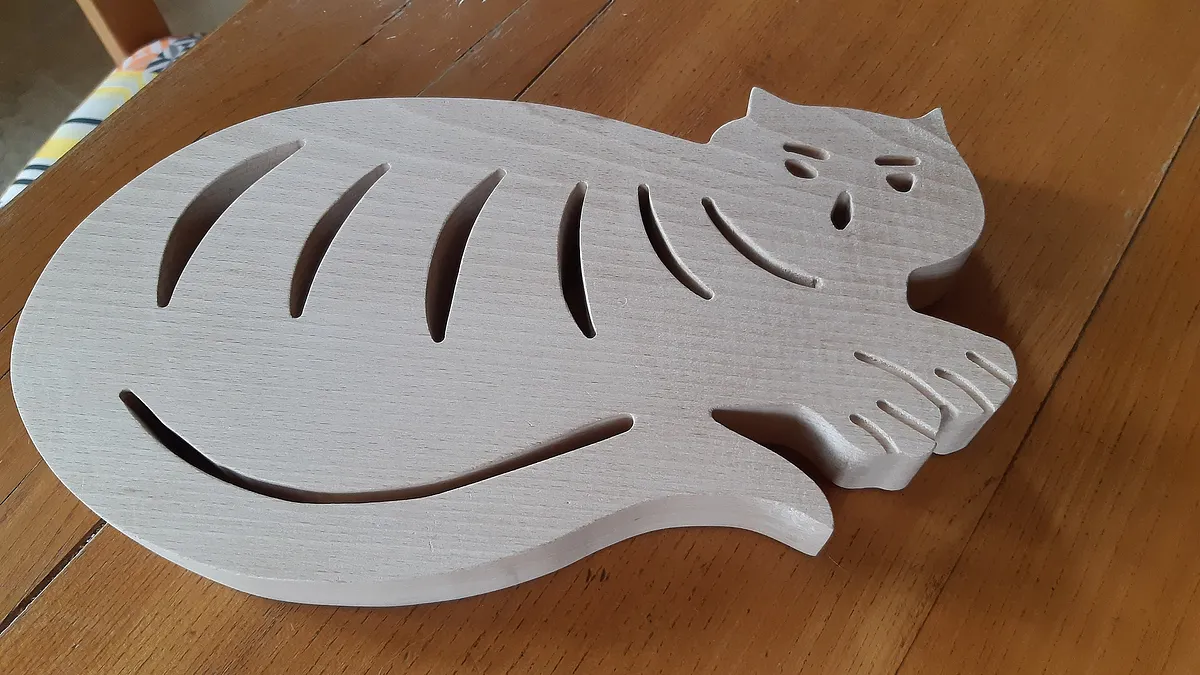 Cat hot pad made with beech wood. A bit long to manufacture...