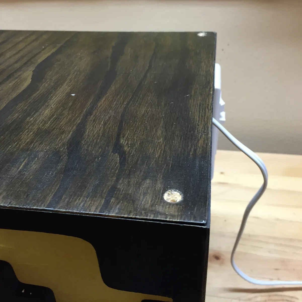 Finish of paint five sided cube and bottom panel with back paint or stain.