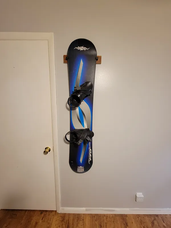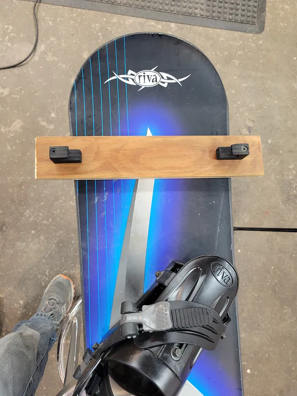 Snowboard L Bracket mount. I made this out of 3/4 Hickory plywood. I tried making this out of MDF and it snapped in half under the weight of the board. This L bracket could be modified for many other mounting applications