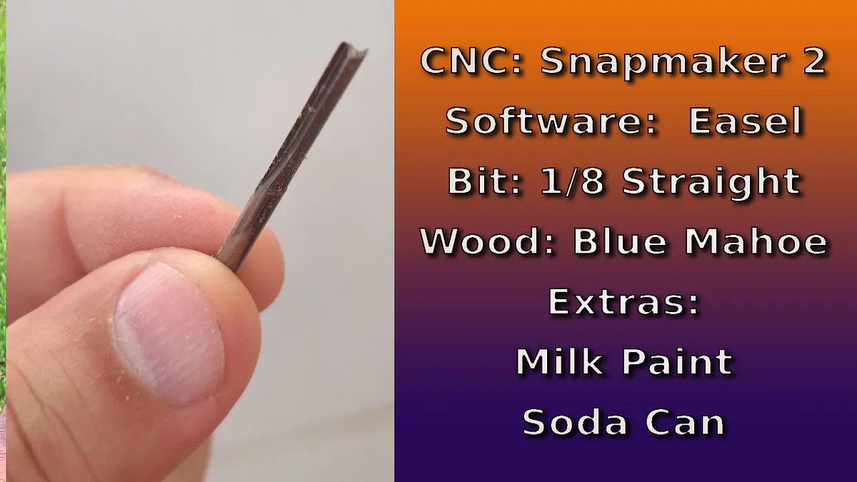 Great project executed with one 1/8 Bit (Straight Bit). Behind the concept, the idea was to create a beautiful but functional piece with one toolpath. I used a 12x10 board of Blue Mahoe, Milk Paint & a Soda can. See process video here: https://youtu.be/ARuYN31d6Hg