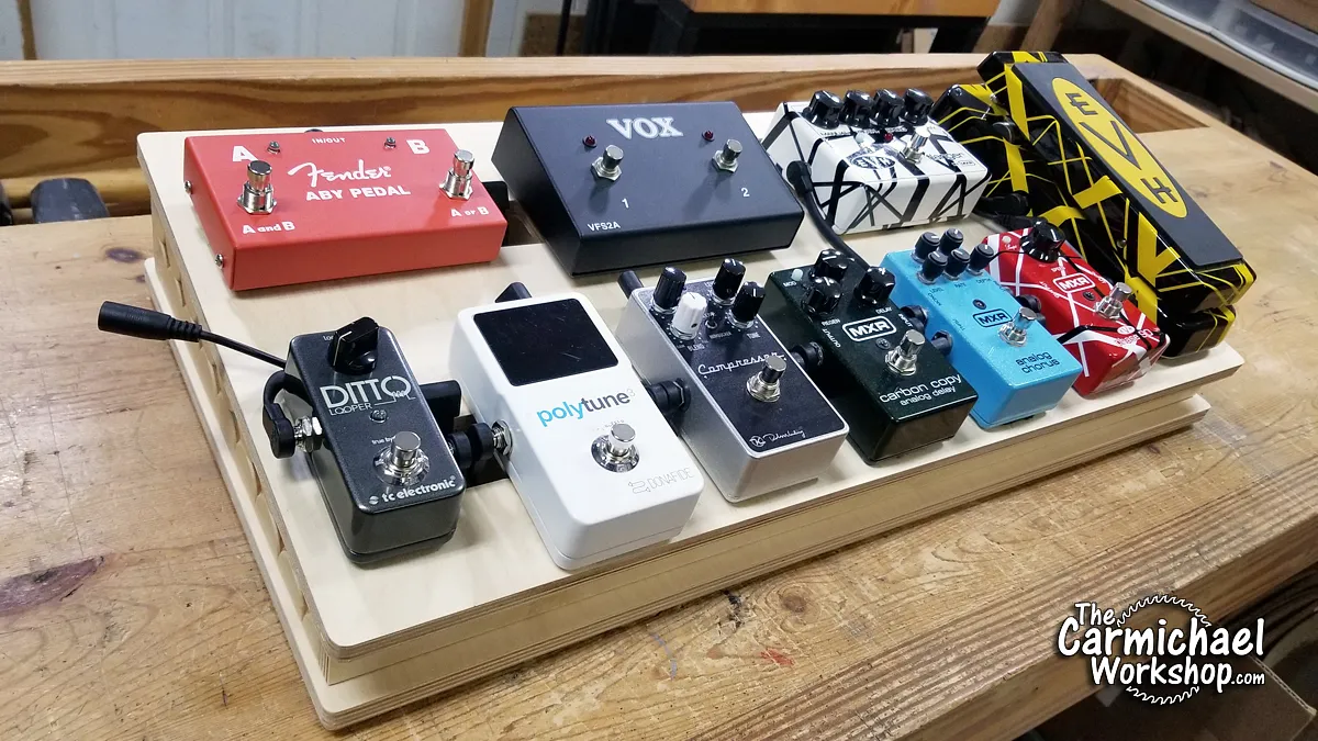Thanks for checking out my Pedal Board project! For more fun projects like this one, visit my YouTube channel "The Carmichael Workshop":https://www.youtube.com/user/carmichaelworkshop?sub_confirmation=1 where I have hundreds of different project videos. "Click here to visit my website for FREE project plans.":http://www.thecarmichaelworkshop.com/. Thanks to Inventables for sponsoring this project and supporting my channel.