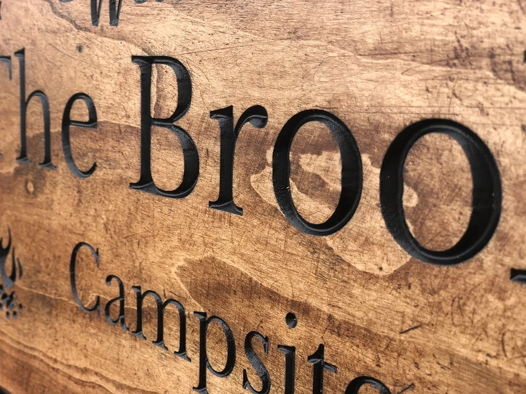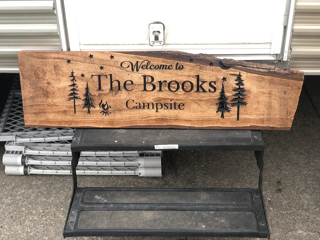 Camping season is HERE! These are pretty sweet and really easy to make. We use a 3/8 90* V-carve bit. Once it's carved I spray with spray paint and then plane the paint off the surface. When finished I stain and coat with a outdoor spray on poly.