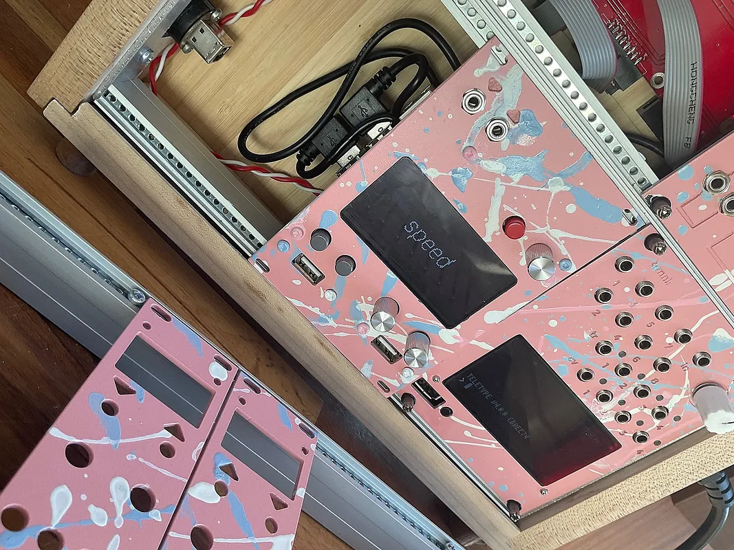This is a Eurorack panel for the Monome Norns Shield. Everything is set up for a 2.5mm spiral uncut with 2mm aluminium plate. USB holes are for standard right angled USB breakout cables but do check the hole spacing as they can vary from model to model but are usually 27mm centres.