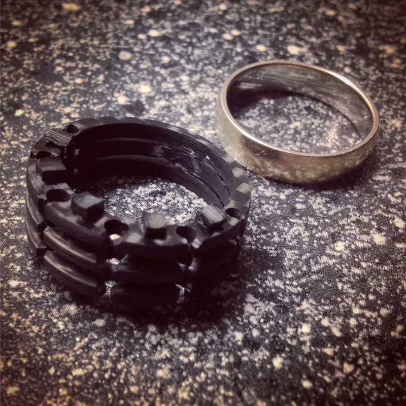Here is an easy to create ring made from 2mm carbon sheeting. In order to permanently fuse the pieces together use some CA glue to stick them together, and wet sand the edges to ensure a comfortable fit. Inner diameter is set at 18.5mm, and can be modified to Your own size.