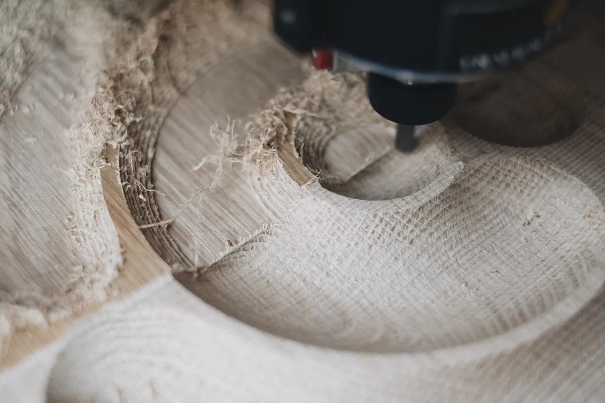 G-code is attached for you to load into Easel, or alternatively download the Fusion360 file to create your own toolpaths. One thing to note with the toolpaths I created - because of the thickness of timber I used (32mm) I wasn't able to cut all the way through with the 1/4 inch bit on the final cutting operation due to vibrations and bit deflection. I ended up going around 25mm deep and cutting the whole piece out of the stock with a jigsaw, and sanding/planing away the edge.