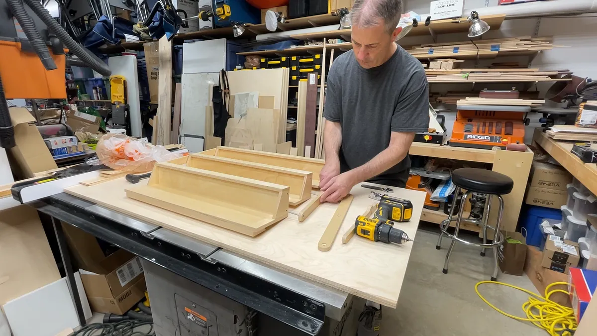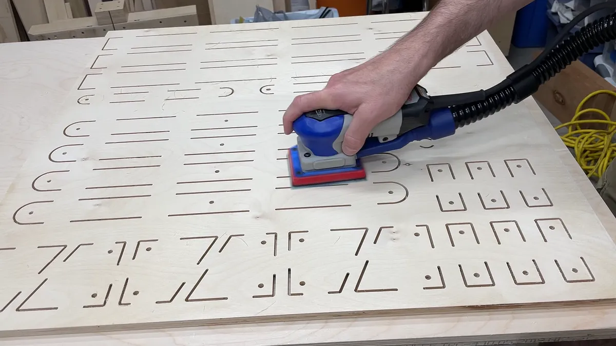 1/2" Baltic Birch plywood (used for all shelf components) 3/4" Baltic Birch plywood (for my french cleats) Various sand paper 1/4-20 x 2-1/2" Hex Socket Button Head Cap Screws Bolts (you need 12 for the project) - "Link":https://amzn.to/3ze05YX 1/4" flat washers (you need 26 for the project) - You can get these at your local hardware store or on Amazon - "Link":https://amzn.to/3PsiKFK 1/4" nyloc nuts (you need 12 for the project) - You can get these at your local hardware store or on Amazon - "Link":https://amzn.to/3AUhIhB 1/2" diameter nylon spacer - 1/2" long, 1/2" outer diameter diameter Home Depot has a 2-pack and that is all you need - "Link":https://www.homedepot.com/p/1-2-in-x-0-257-in-x-1-2-in-Nylon-Outer-Diameter-Spacers-2-Piece-815008/204276571 General Finished Water Based Top Coat (Satin) - "Link":https://amzn.to/3NJdoWp Titebond Wood Glue - https://amzn.to/3NJiaDh XFasten 1-Inch Double Sided Woodworking Tape - "Link":https://amzn.to/3DL2GKs This is what I used to hold the plywood down on the CNC