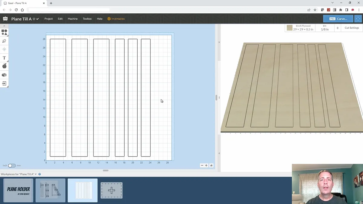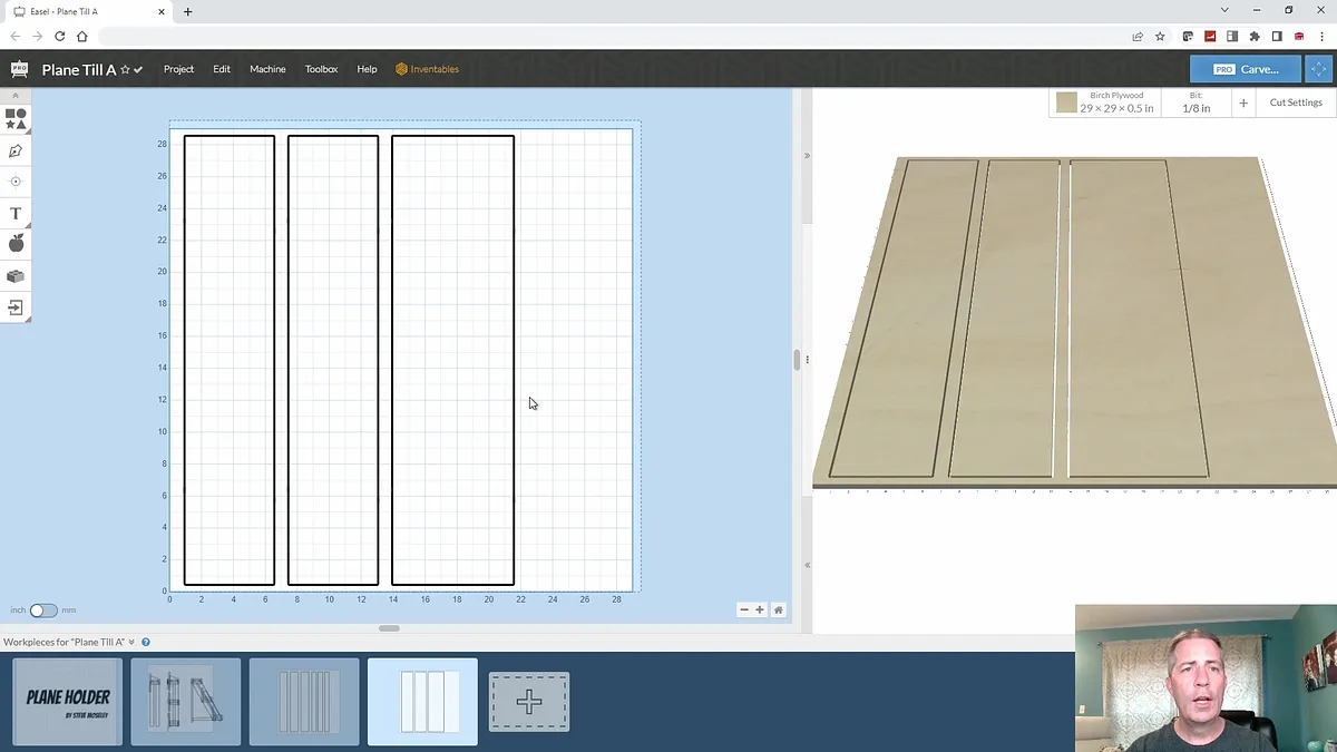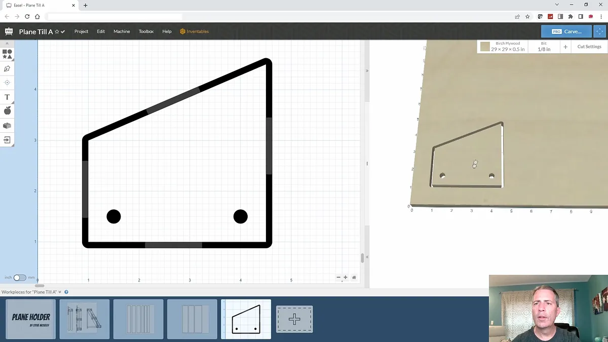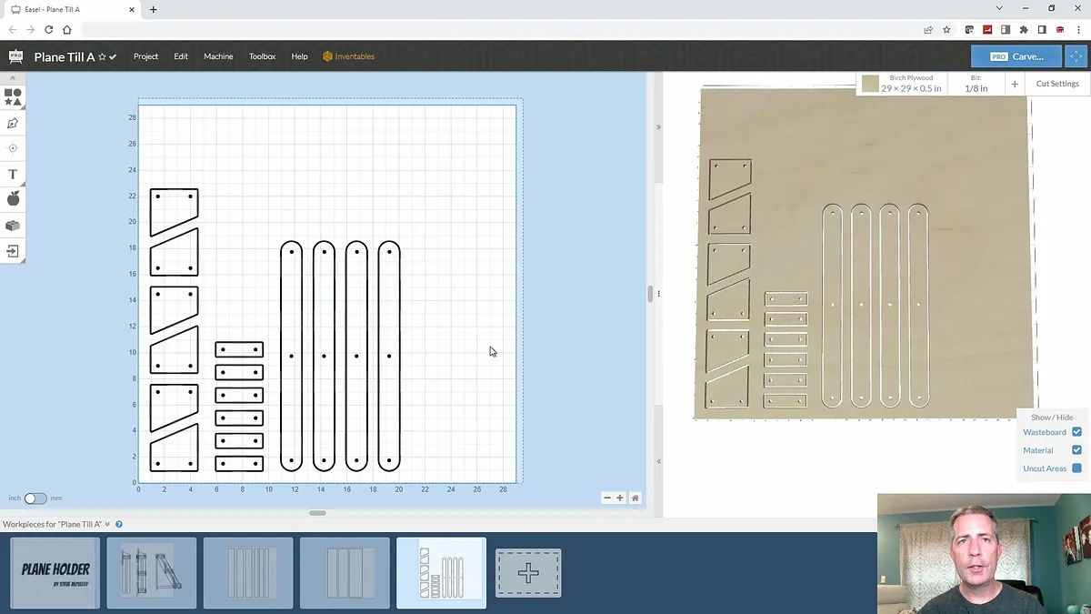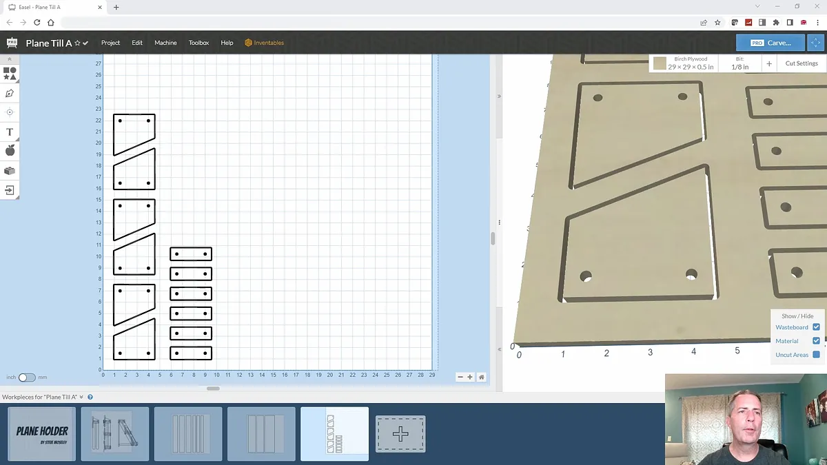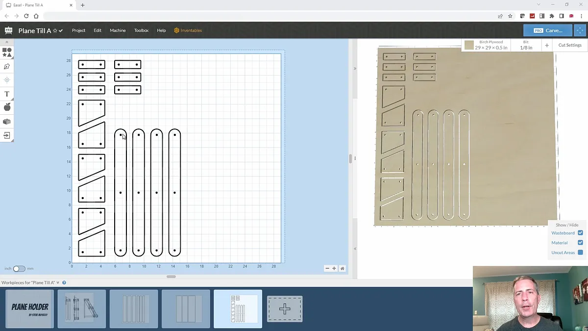 The parts of this hand plane holder are very easy to create in Easel Pro software from Inventables. You can follow along step by step in the Youtube video.