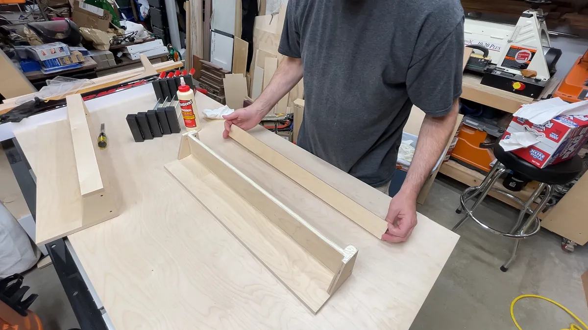 Lastly I glued the cleat on the top of the largest shelf back piece. Make sure you glue it on in the right direction. I have caught myself coming close to gluing them on upside down before.